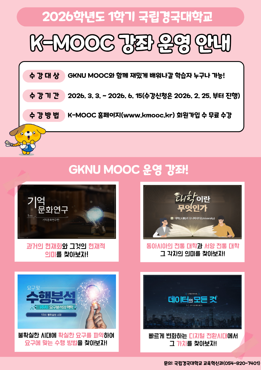- 국립경국대학교 2026년 1학기 K-MOOC 강좌 수강 안내