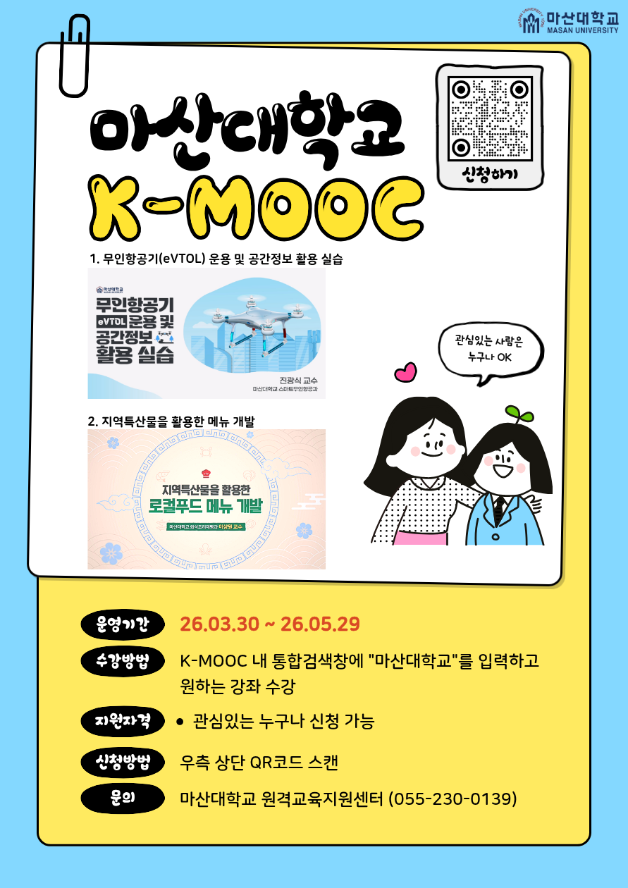 마산대학교 2026년 1학기 K-MOOC 강좌 수강 안내